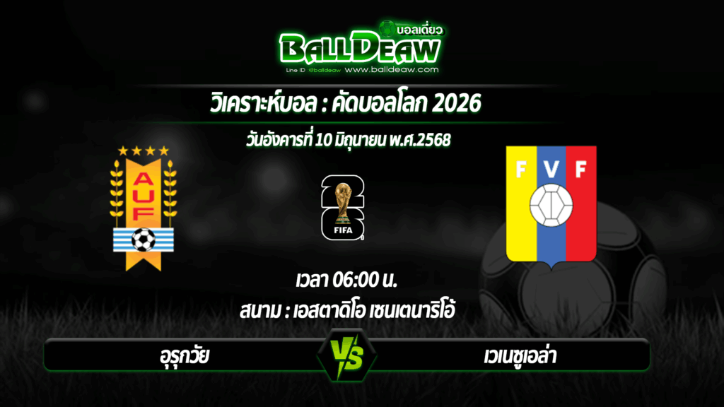 ทรรศนะ : ต้องบอกว่าวิเคราะห์บอลคู่นี้มีเดิมพันสูงเลยทีเดียวหลังจากที่ทีมรองบ่อนอย่าง เวเนซูเอล่า กำลังทำผลงานได้ดีซะงั้นหลังจากที่เข้าวินมา 2 นัดซ้อนจนทำให้พวกเขากลับมาลุ้นไปเตะบอลโลก 2026 รอบสุดท้ายอีกครั้งเท่ากับว่าทริปเยือนวันนี้พร้อมสร้างเซอร์ไพร์สให้กับคู่แข่งเช่นเคย ประจวบเหมาะกับชั่วโมงนี้ อุรุกวัย เจ้าบ้านกำลังเป๋แบบต่อเนื่องเพราะ 4 นัดท้าย (แพ้ 2 เสมอ 2) ไม่สามารถเอาชนะใครได้เลยแม้ขุมกำลังจะเหนือกว่าเยอะแต่บอกได้เลยว่าความมั่นใจกำลังหดหายแบบนี้ยังไงก็ไม่มีคำว่าง่ายหากจะหวังเก็บสามแต้ม ฉะนั้นกับราคาบอลที่เปิดมาให้ อุรุกวัย ต่อ 1 เม็ดกับผลงานที่เอาแน่เอานอนไม่ได้แบบนี้ยังไงก็ไม่น่าเสี่ยงด้วยประการทั้งปวง