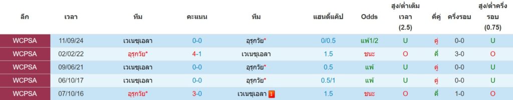 สถิติการพบกันล่าสุดของ : อุรุกวัย -vs- เวเนซูเอล่า