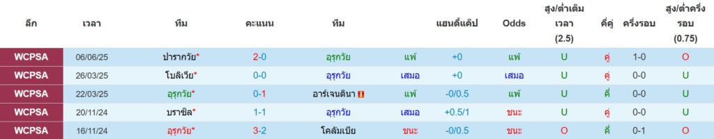 สถิติ 5 นัดล่าสุดของ อุรุกวัย : ชนะ 1 เสมอ 2 แพ้ 2