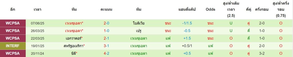 สถิติ 5 นัดล่าสุดของ เวเนซูเอล่า : ชนะ 2 เสมอ 0 แพ้ 3