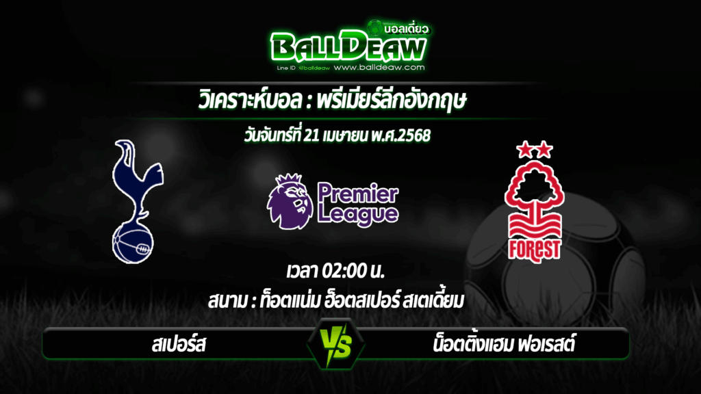 ทรรศนะ : แม้ว่าทีมเยือน ฟอเรสต์ จะฟอร์มตกดวงแตกและพ่ายรวด 2 เกมลีกที่ผ่านมาก็ตาม แต่ด้วยศักยภาพของทีมรวมไปถึงแท็คติกของกุนซือ บวกกับสถานการณ์ลุ้นท็อปโฟร์ไปเล่น ยูฟ่า แชมเปี้ยนส์ ลีก ซีซั่นหน้า ทำให้พวกเขายังทิ้งไม่ได้และต้องรีบกลับมาเก็บสามคะแนนให้ได้โดยเร็ว ซึ่งทริปตะลุยลอนดอนครั้งนี้ ไม่ถึงกับยากเกินที่จะทำตามเป้า นั่นเพราะเจ้าถิ่น สเปอร์ส ที่เพิ่งจะตีตั๋วเข้ารอบรองฯ ยูฟ่า ยูโรป้า ลีก มาหมาด ๆ ก็น่าจะหันโฟกัสไปลุ้นทางนั้นเต็มระบบเพื่อโควต้าแชมป์เช่นเดียวกัน ฉะนั้นในพรีเมียร์ลีกก็คงแค่ประคองทรงไปเรื่อย ๆ จึงไม่แปลกที่จะได้เห็นการโรเตชั่น และผลงานที่ออกทะเลอย่างต่อเนื่อง ด้วยการชนะเพียงคราเดียวเหนือ เซาท์แฮมป์ตัน ตลอด 6 เกมลีกท้าย (เสมอ 1, แพ้ 4) และโดนทะลวงแนวรับยับเยินร่วม ๆ 11 ตุง ฉะนั้นงานนี้น่าจะเข้าทางอาคันตุกะบุกชนะเหมือนเช่นเคย