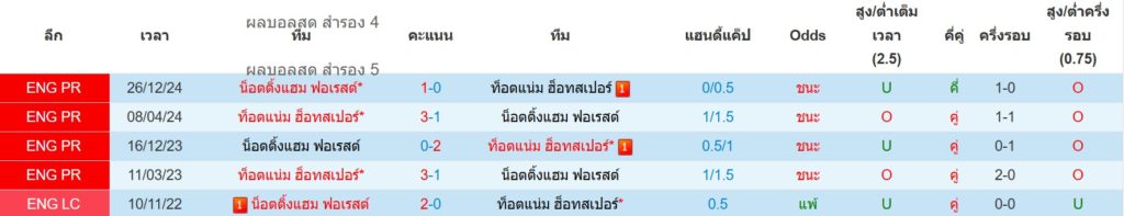 สถิติการพบกันล่าสุดของ : สเปอร์ส -vs- น็อตติ้งแฮม ฟอเรสต์