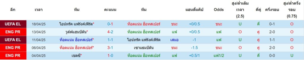 ราคาต่อรอง : สเปอร์ส ต่อ 0/0.5