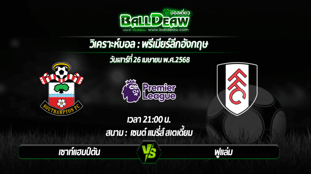 วิเคราะห์บอล พรีเมียร์ลีกอังกฤษ : เซาท์แฮมป์ตัน -vs- ฟูแล่ม ( 26 เม.ย. 68 )