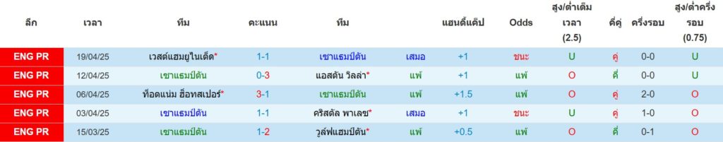 สถิติ 5 นัดล่าสุดของ เซาท์แฮมป์ตัน : ชนะ 0 เสมอ 2 แพ้ 3