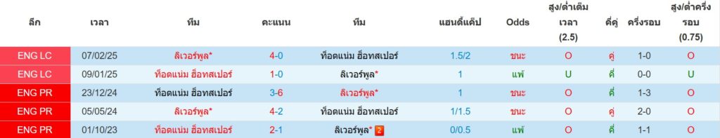 สถิติการพบกันล่าสุดของ : ลิเวอร์พูล -vs- สเปอร์ส