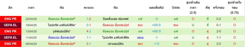 สถิติ 5 นัดล่าสุดของ สเปอร์ส : ชนะ 2 เสมอ 1 แพ้ 2