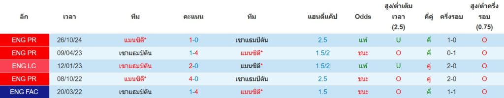 สถิติการพบกันล่าสุดของ : เซาท์แฮมป์ตัน -vs- แมนฯซิตี้