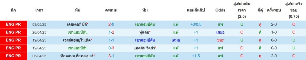 สถิติ 5 นัดล่าสุดของ เซาท์แฮมป์ตัน : ชนะ 0 เสมอ 1 แพ้ 4