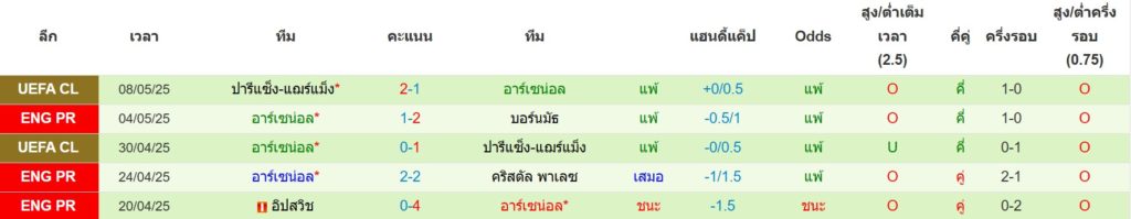 สถิติ 5 นัดล่าสุดของ อาร์เซน่อล : ชนะ 1 เสมอ 1 แพ้ 3