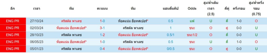 สถิติการพบกันล่าสุดของ : สเปอร์ส -vs- คริสตัล พาเลซ
