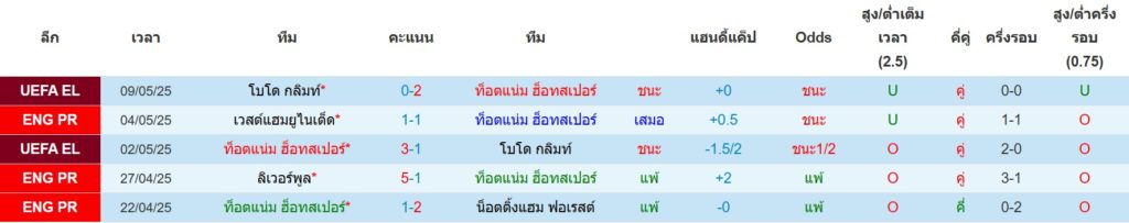 สถิติ 5 นัดล่าสุดของ สเปอร์ส : ชนะ 2 เสมอ 1 แพ้ 2