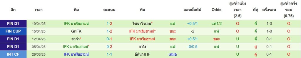 สถิติ 5 นัดล่าสุดของ มารีฮามน์ : ชนะ 2 เสมอ 1 แพ้ 2