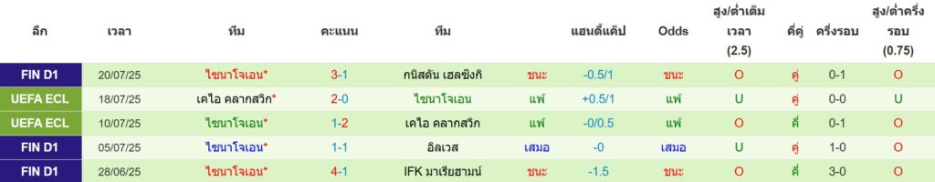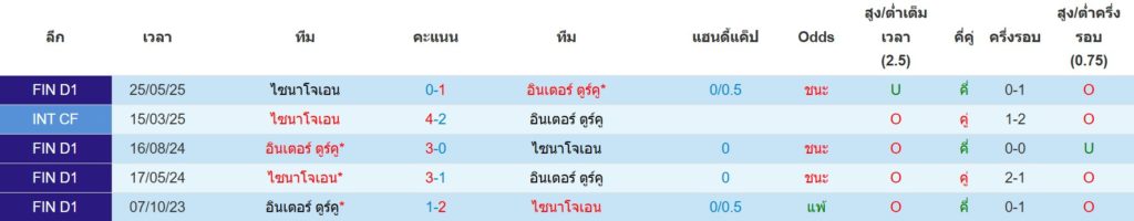 สถิติการพบกันล่าสุดของ : อินเตอร์ ตูร์คู -vs- เอสเจเค ไซนาโยน