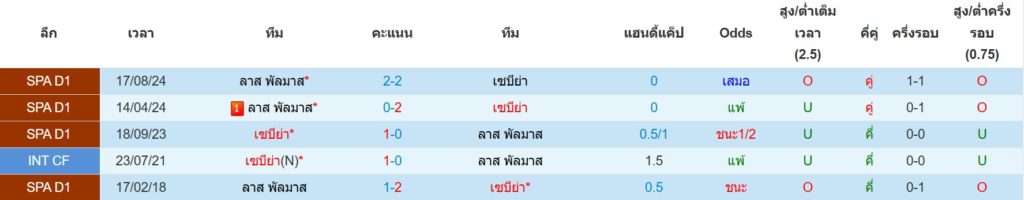 สถิติการพบกันล่าสุดของ : เซบีย่า -vs- ลาส พัลมาส