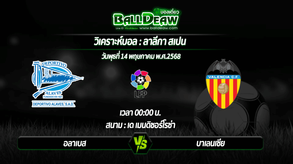 วิเคราะห์บอล ลาลีกา สเปน : อลาเบส -vs- บาเลนเซีย ( 14 พ.ค. 68 )