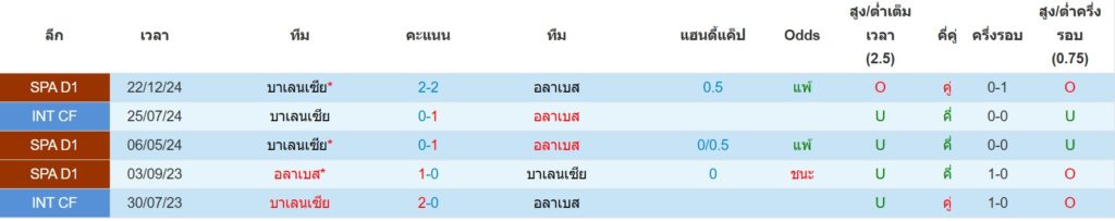 สถิติการพบกันล่าสุดของ : อลาเบส -vs- บาเลนเซีย