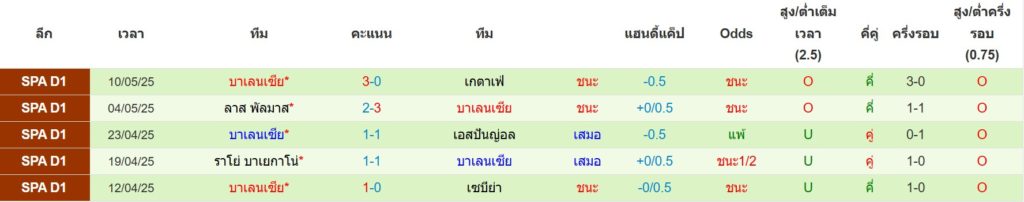 สถิติ 5 นัดล่าสุดของ บาเลนเซีย : ชนะ 3 เสมอ 2 แพ้ 0