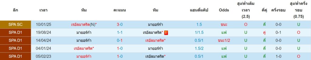 สถิติการพบกันล่าสุดของ : เรอัล มาดริด -vs- มายอร์ก้า