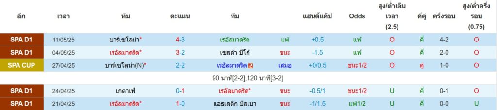 สถิติ 5 นัดล่าสุดของ เรอัล มาดริด : ชนะ 3 เสมอ 1 แพ้ 1