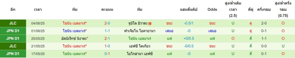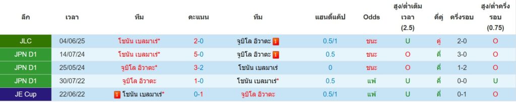 สถิติการพบกันล่าสุดของ : จูบิโล่ อิวาตะ -vs- โชนัน เบลล์มาเร่