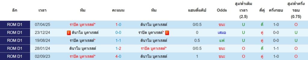 สถิติการพบกันล่าสุดของ : ดินาโม บูคาเรสต์ -vs- ราปิด บูคาเรสต์