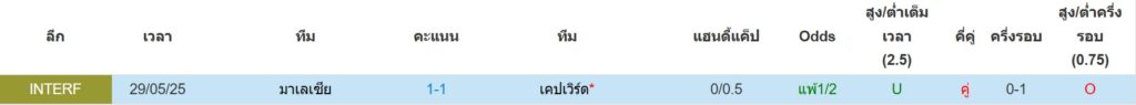สถิติการพบกันล่าสุดของ : มาเลเซีย -vs- เคปเวิร์ด