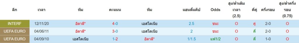 สถิติการพบกันล่าสุดของ : อิตาลี -vs- เอสโตเนีย