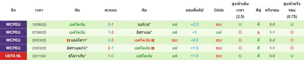 สถิติ 5 นัดล่าสุดของ เอสโตเนีย : ชนะ 1 เสมอ 0 แพ้ 4