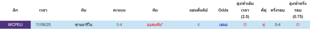 สถิติการพบกันล่าสุดของ : ออสเตรีย -vs- ซาน มาริโน่