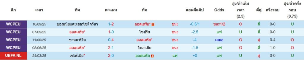 สถิติ 5 นัดล่าสุดของ ออสเตรีย : ชนะ 4 เสมอ 0 แพ้ 1