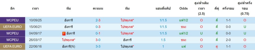 สถิติการพบกันล่าสุดของ : โปรตุเกส -vs- ฮังการี