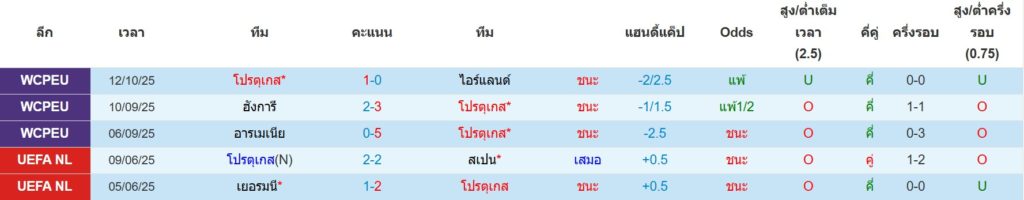 สถิติ 5 นัดล่าสุดของ โปรตุเกส : ชนะ 4 เสมอ 1 แพ้ 0