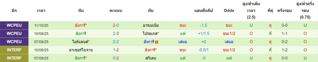 สถิติ 5 นัดล่าสุดของ ฮังการี : ชนะ 2 เสมอ 1 แพ้ 2