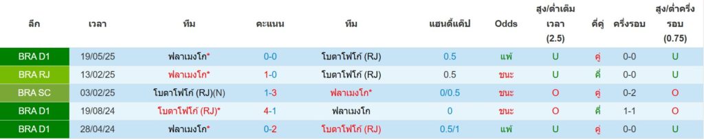 สถิติการพบกันล่าสุดของ : โบตาโฟโก้ -vs- ฟลาเมงโก้