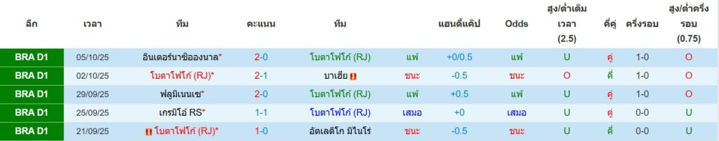 สถิติ 5 นัดล่าสุดของ โบตาโฟโก้ : ชนะ 2 เสมอ 1 แพ้ 2