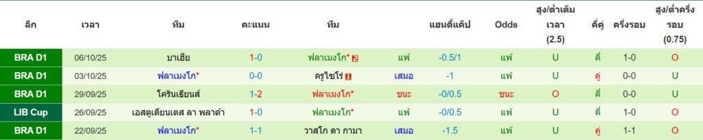 สถิติ 5 นัดล่าสุดของ ฟลาเมงโก้ : ชนะ 1 เสมอ 2 แพ้ 2