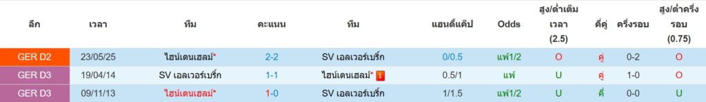 สถิติการพบกันล่าสุดของ : เอลเวอร์สแบร์ก -vs- ไฮเด้นไฮม์
