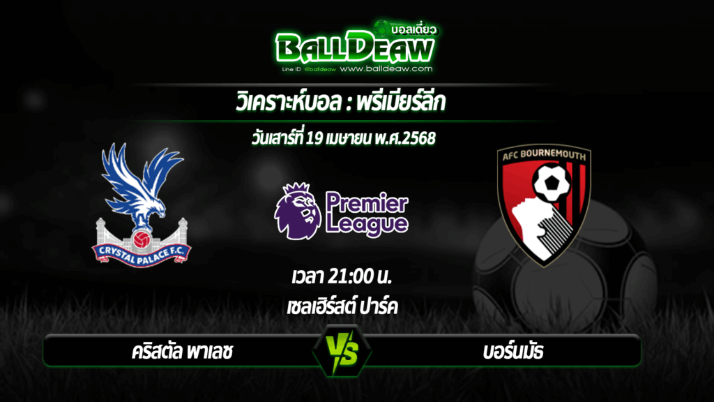 วิเคราะห์บอล พรีเมียร์ลีก : คริสตัล พาเลซ -vs- บอร์นมัธ ( 19 เม.ย. 68 )