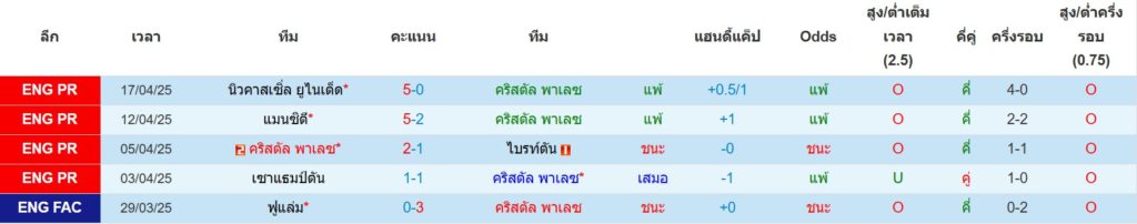 ราคาต่อรอง : คริสตัล พาเลซ ต่อ 0/0.5