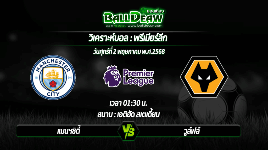 วิเคราะห์บอล พรีเมียร์ลีก : แมนฯซิตี้ -vs- วูล์ฟส์ ( 02 พ.ค. 68 )