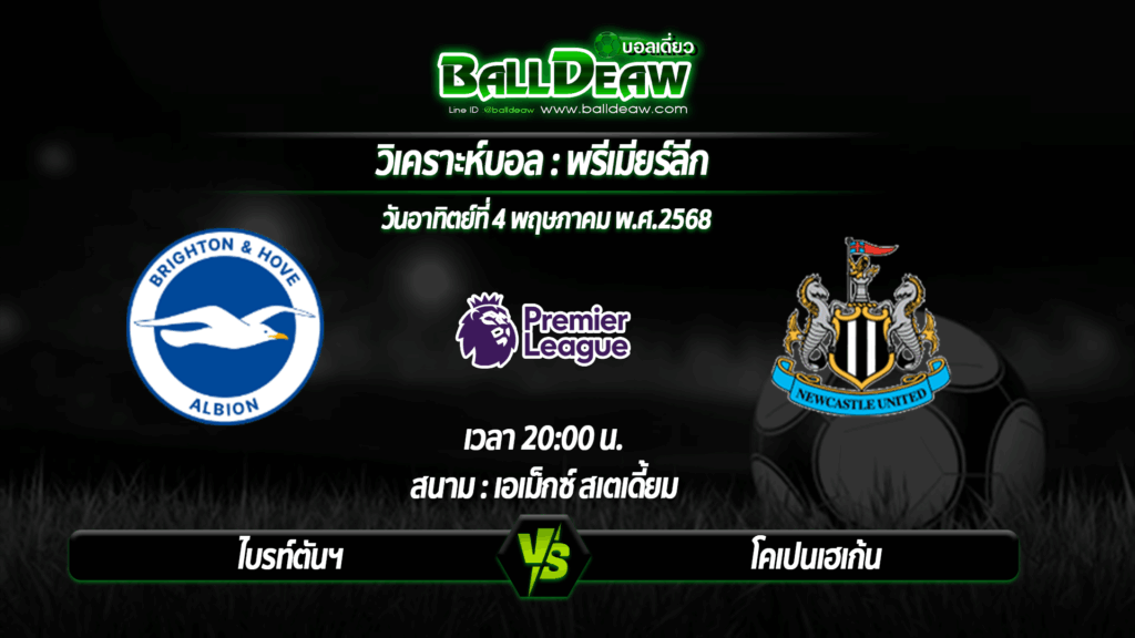 ทรรศนะ : บอกเลยว่าทีมเยือน นิวคาสเซิ่ล เดินหน้าลุยเข้าใส่เต็มระบบ หวังโกยแต้มรักษาพื้นที่ท็อปไฟร์ให้อยู่ในมือพวกเขา นั่นจึงเห็นผลงานสุดหรูคว้าชัย 6 จาก 7 เกมลีกท้าย (แพ้ 1) และผลิตสกอร์มากมายก่ายกองร่วม ๆ 19 ประตูเลยทีเดียว ต้องยอมรับว่าเกมรุกช่วงนี้ดุดันแบบไม่เกรงใจใคร สอดคล้องกับเจ้าบ้าน ไบรท์ตันฯ แม้จะเพิ่งจะเปิดรังเอาชนะ เวสต์แฮม 3-2 แต่ก่อนหน้านั้นพวกเขาฟอร์มออกทะเลหนัก ไม่ชนะใครเลย 5 เกมลีกรวดและปราชัย 3 หน (เสมอ 2) แถมเกมรับสุดห่วยโดนส่องไปเน้น ๆ 13 ตุง เอาจริงแล้วถ้านับเกมล่าสุดไปด้วย พวกเขายังคงย่ำแย่ในเรื่องการป้องกันประตูเหมือนเคย ฉะนั้นแล้วงานนี้ยังไงก็รอดยาก แนะนำอยู่ต่อสถานเดียว