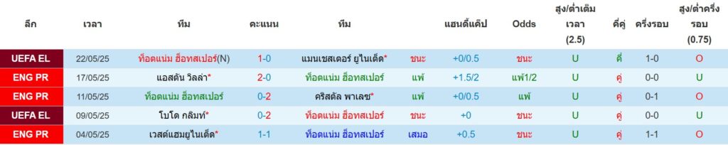 สถิติ 5 นัดล่าสุดของ สเปอร์ส : ชนะ 2 เสมอ 1 แพ้ 2