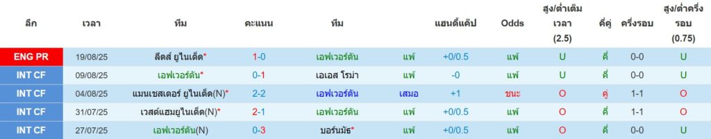 สถิติ 5 นัดล่าสุดของ เอฟเวอร์ตัน : ชนะ 0 เสมอ 1 แพ้ 4