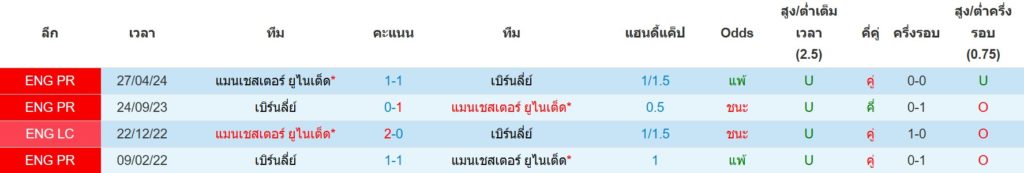 สถิติการพบกันล่าสุดของ : แมนฯยู -vs- เบิร์นลี่ย์