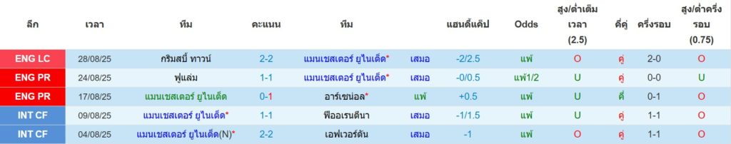 สถิติ 5 นัดล่าสุดของ แมนฯยู : ชนะ 0 เสมอ 4 แพ้ 1