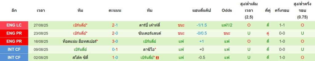 สถิติ 5 นัดล่าสุดของ เบิร์นลี่ย์ : ชนะ 2 เสมอ 0 แพ้ 3