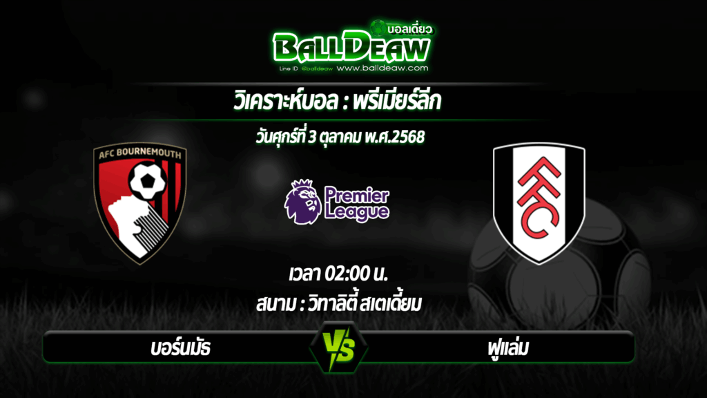 ทรรศนะ : ต้องบอกว่าทีมเยือน ฟูแล่ม มีแววไม่แพ้กลับออกไป เพราะตลอด 6 เกมลีกที่ผ่านมาปราชัยเพียงสองคราเท่านั้น (ชนะ 2, เสมอ 2) และยิงรวม 7 ประตู จริงอยู่ที่การเสียขุมกำลังหลักหลายรายก็อาจจะกระทบกับแทคติกและเกมรุกอยู่บ้าง แต่ทว่ากำลังเสริมอย่าง อดาม่า ตราโอเร่ ก็ถือว่าเป็นอาวุธลับที่เกมรับหลายคนไม่ค่อยถูกใจนัก ประกอบกับเจ้าถิ่น บอร์นมัธ ผลงานไม่น่าประทับใจสักเท่าไร หลังจบเจ๊ารวด 2 หนท้ายในลีก จะนับเป็นจุดเริ่มต้นของการออกทะเลเลยก็ว่าได้ ครั้นจะฝากความหวังให้พังสกอร์เก็บชัยกับคู่แข่งที่เรียกว่าฟอร์มไม่ธรรมดา ก็อาจจะต้องลุ้นกันเหนื่อย แนะนำรองประคองตัวไม่กลัวตาย