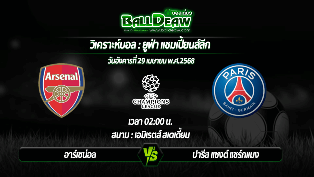 วิเคราะห์บอล ยูฟ่า แชมเปี้ยนส์ลีก : อาร์เซน่อล -vs- ปารีส แซงต์ แชร์กแมง ( 29 เม.ย. 68 )