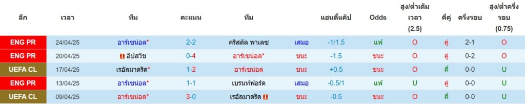 สถิติ 5 นัดล่าสุดของ อาร์เซน่อล : ชนะ 3 เสมอ 2 แพ้ 0
